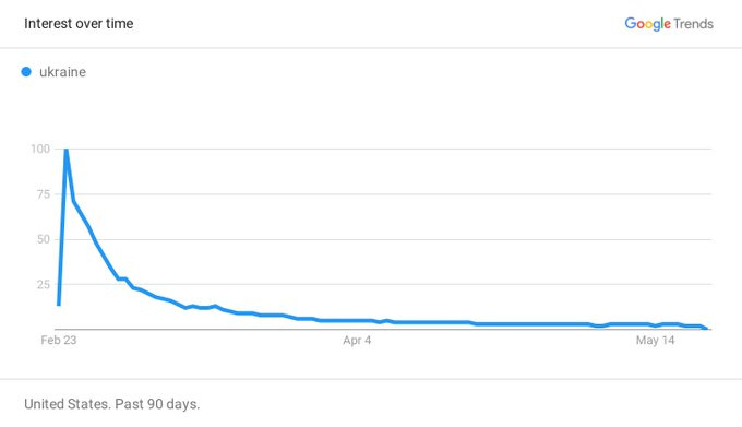 I pondered this idea most recently while reading about Ukraine. A Google trend chart of searches on the topic illustrated a spike in interest at the moment of invasion. This activity waned quickly and searches dropped.